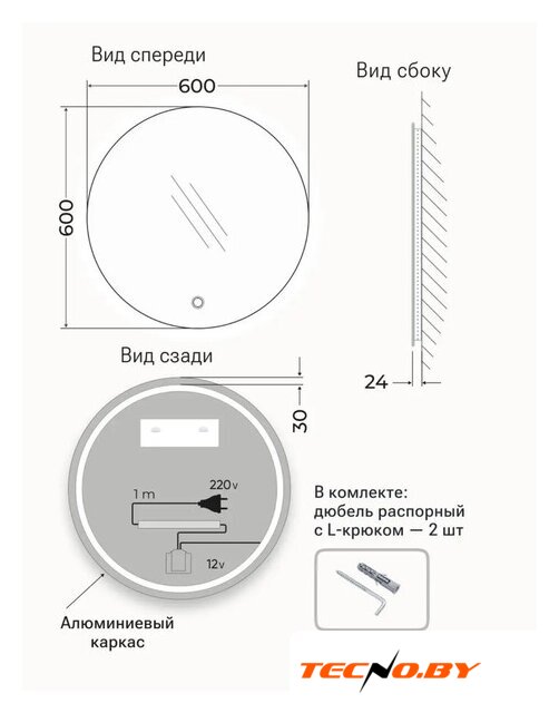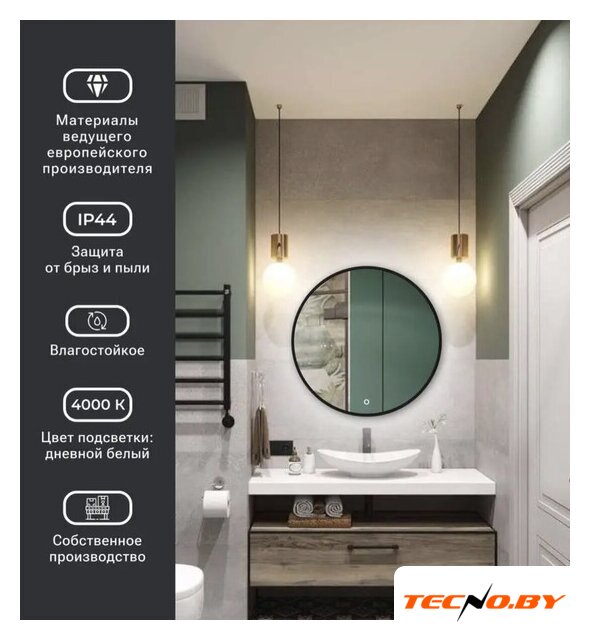 зеркало, с подсветкой, подвесная установка, ширина: 60 см
