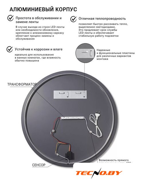 зеркало, с подсветкой, подвесная установка, ширина: 70 см