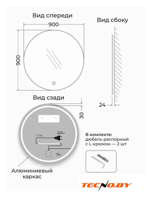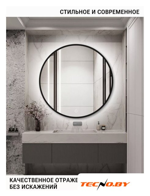 зеркало, с подсветкой, подвесная установка, ширина: 90 см