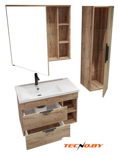 тумба под умывальник, умывальник в комплекте, подвесная установка, ширина: 81 см