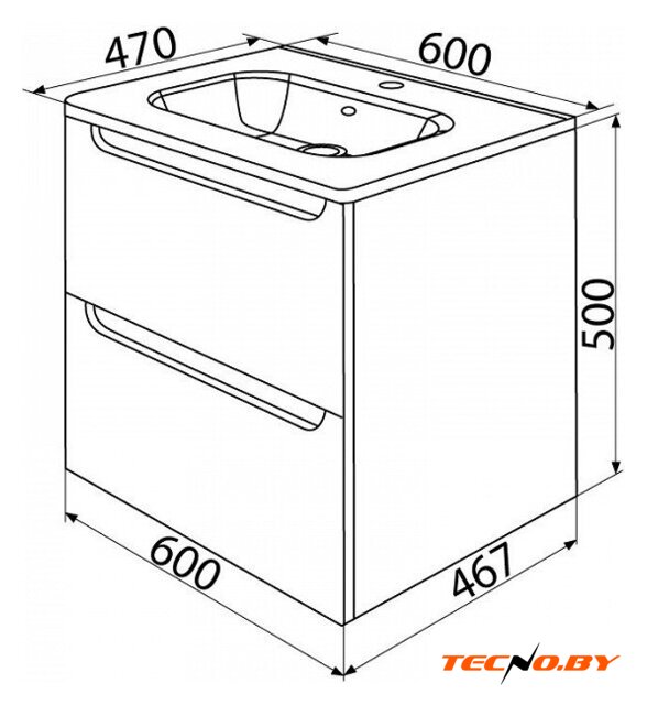 тумба под умывальник, умывальник в комплекте, напольная установка, ширина: 60 см