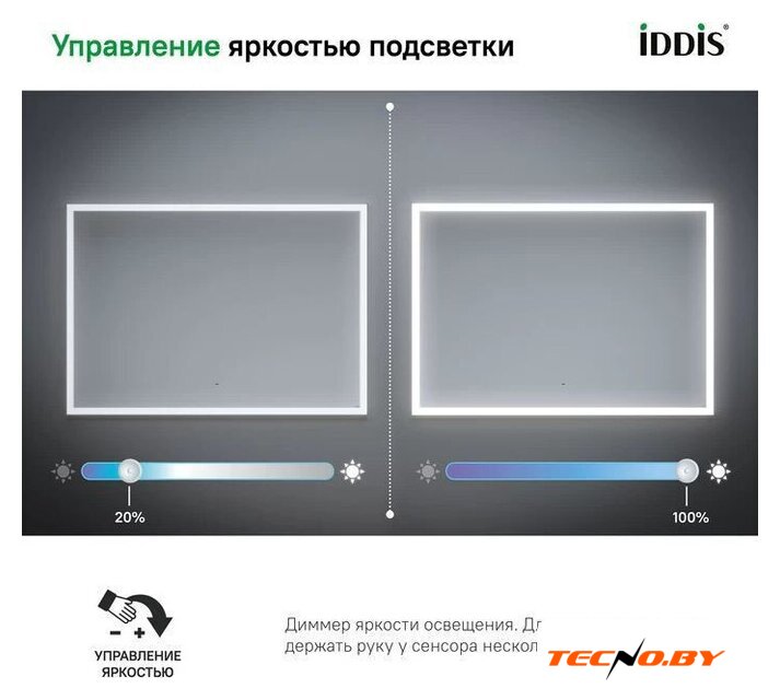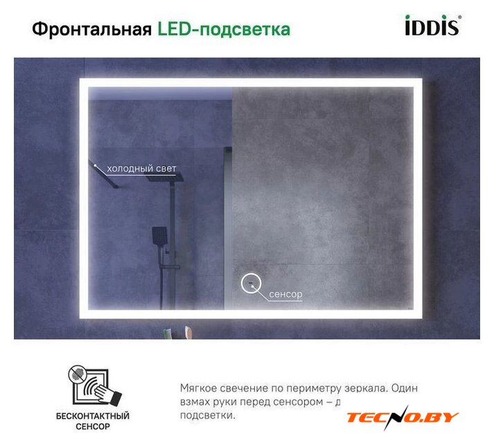 зеркало, с подсветкой, подвесная установка, ширина: 100 см