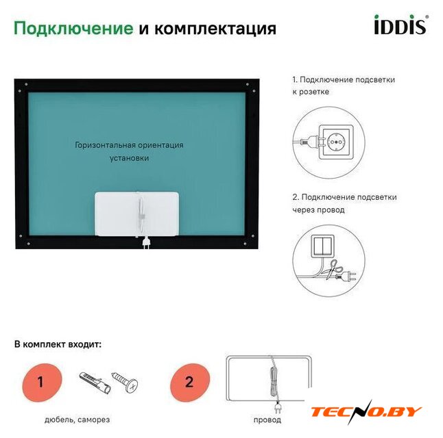зеркало, с подсветкой, подвесная установка