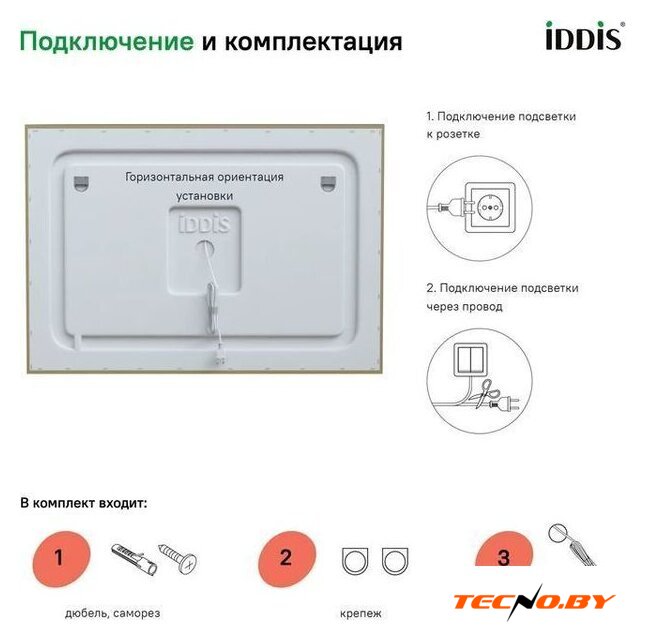 зеркало, с подсветкой, подвесная установка