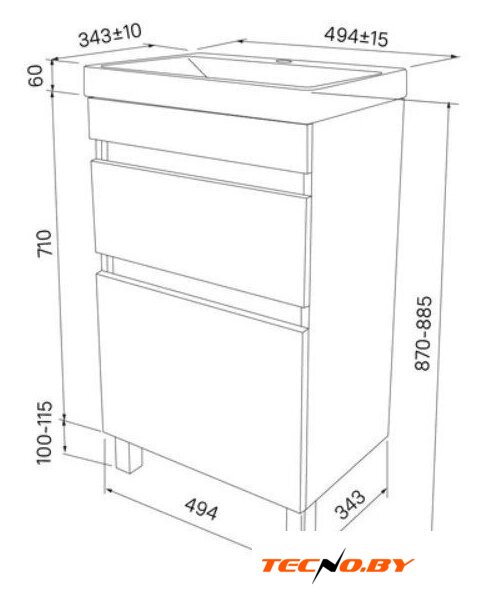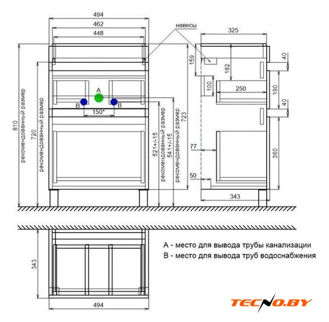 тумба под умывальник, подвесная установка, ширина: 47 см