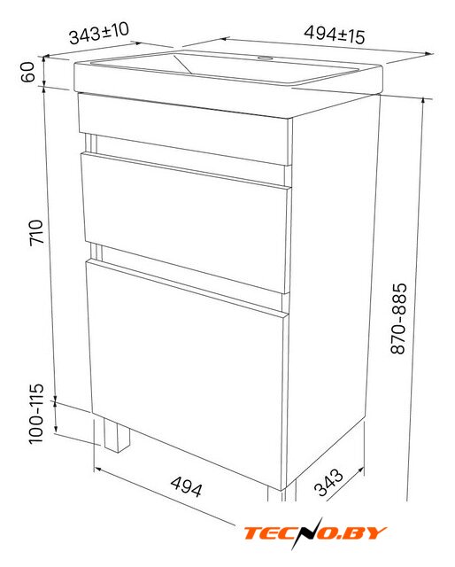 тумба под умывальник, подвесная установка, ширина: 69 см