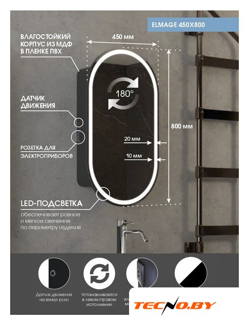 шкаф с зеркалом, с подсветкой, подвесная установка, ширина: 80 см