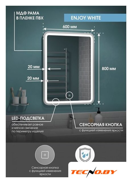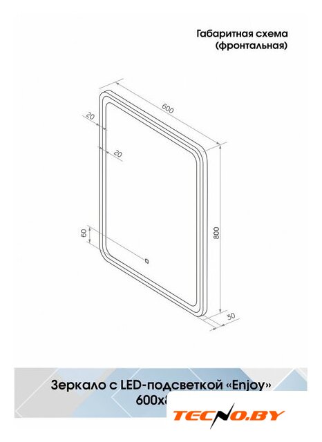 зеркало, с подсветкой, подвесная установка, ширина: 60 см