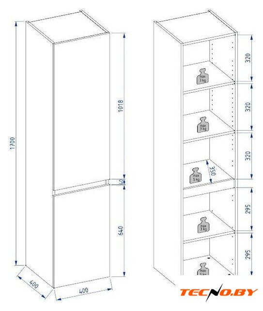 шкаф-пенал, подвесная установка, ширина: 40 см