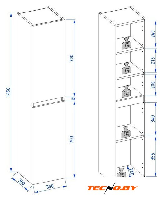 шкаф-пенал, подвесная установка, ширина: 30 см