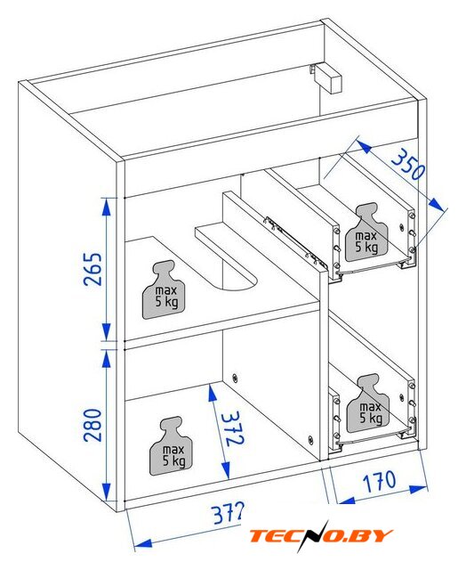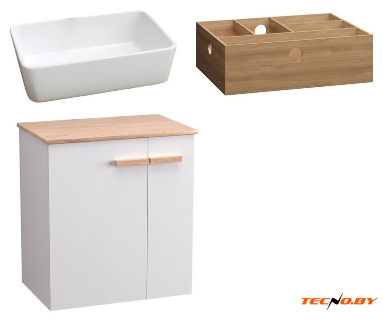 тумба под умывальник, умывальник в комплекте, подвесная установка, ширина: 59 см