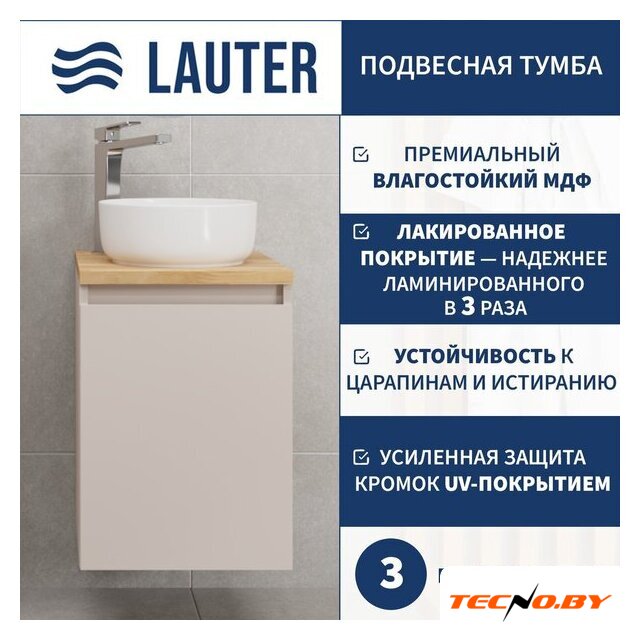 тумба под умывальник, умывальник в комплекте, подвесная установка, ширина: 46 см