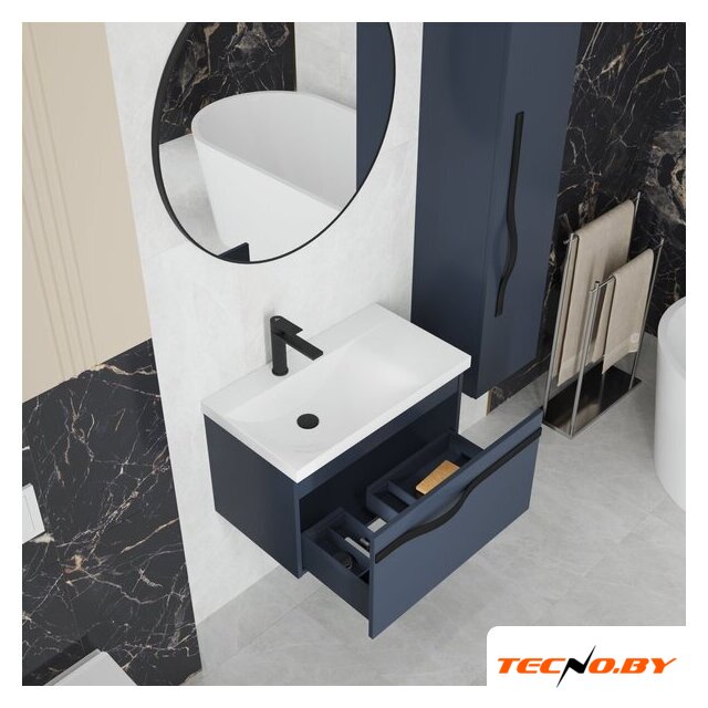 тумба под умывальник, умывальник в комплекте, подвесная установка, ширина: 59 см