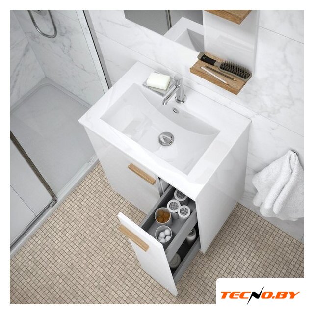 тумба под умывальник, умывальник в комплекте, напольная установка, ширина: 61 см