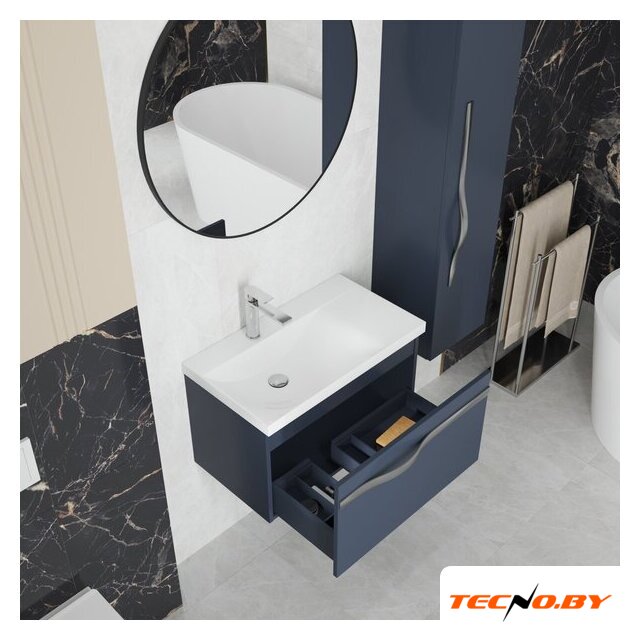 тумба под умывальник, умывальник в комплекте, подвесная установка, ширина: 59 см