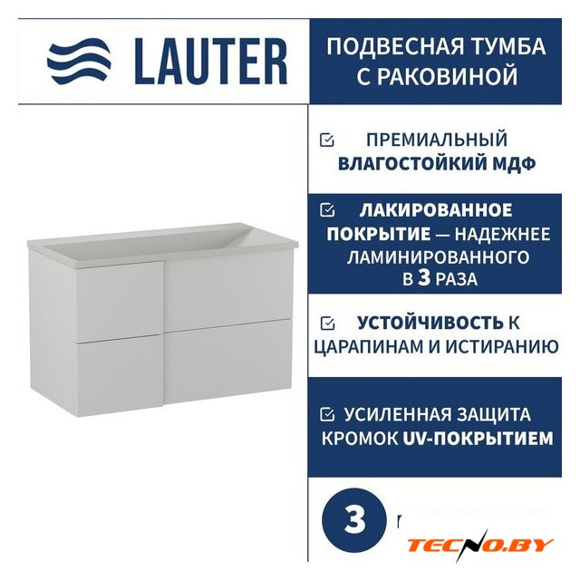 тумба под умывальник, умывальник в комплекте, подвесная установка, ширина: 90 см
