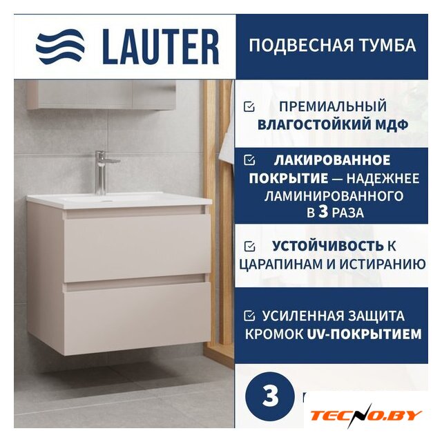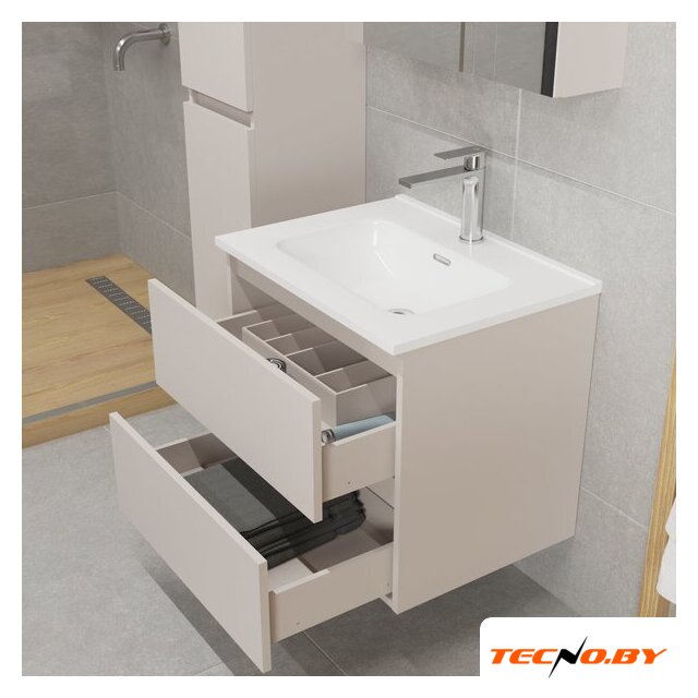 тумба под умывальник, умывальник в комплекте, подвесная установка, ширина: 61 см