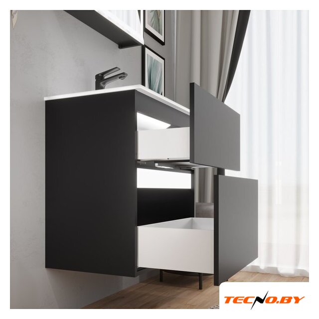 тумба под умывальник, умывальник в комплекте, подвесная установка, ширина: 90 см