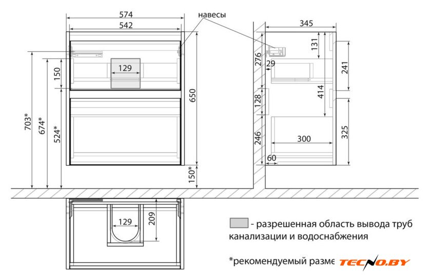 тумба под умывальник, подвесная установка, ширина: 73 см