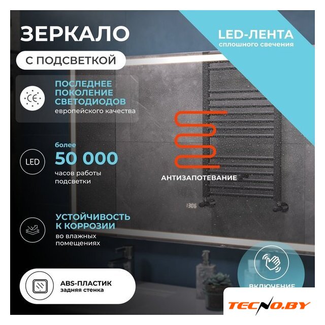 зеркало, с подсветкой, подвесная установка, ширина: 120 см