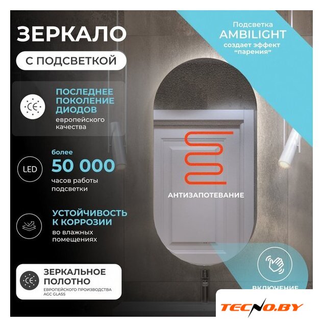 зеркало, с подсветкой, подвесная установка