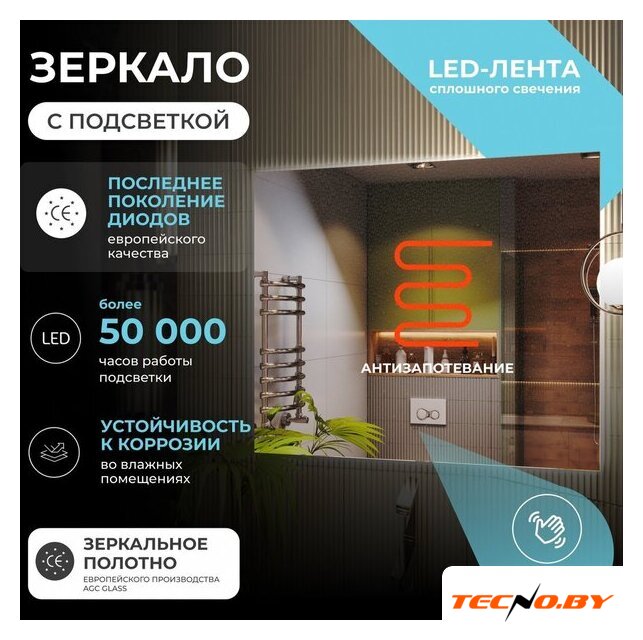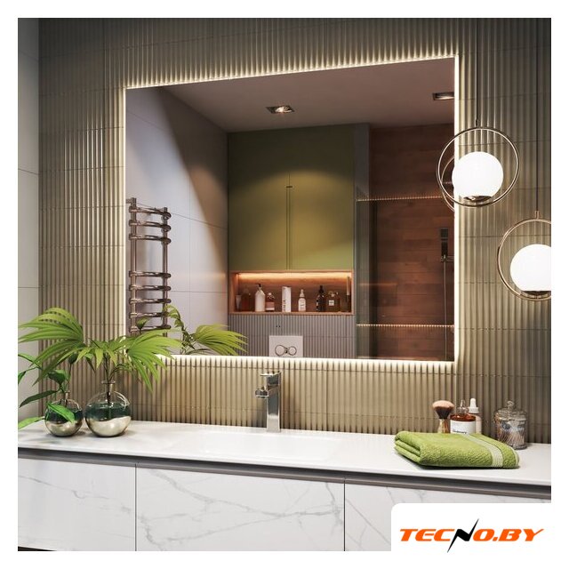 зеркало, с подсветкой, подвесная установка