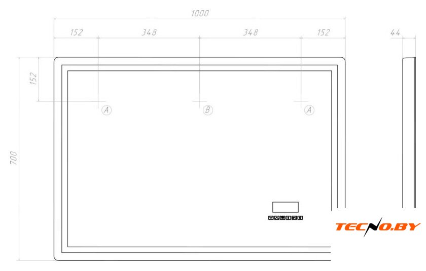 зеркало, с подсветкой, подвесная установка, ширина: 100 см