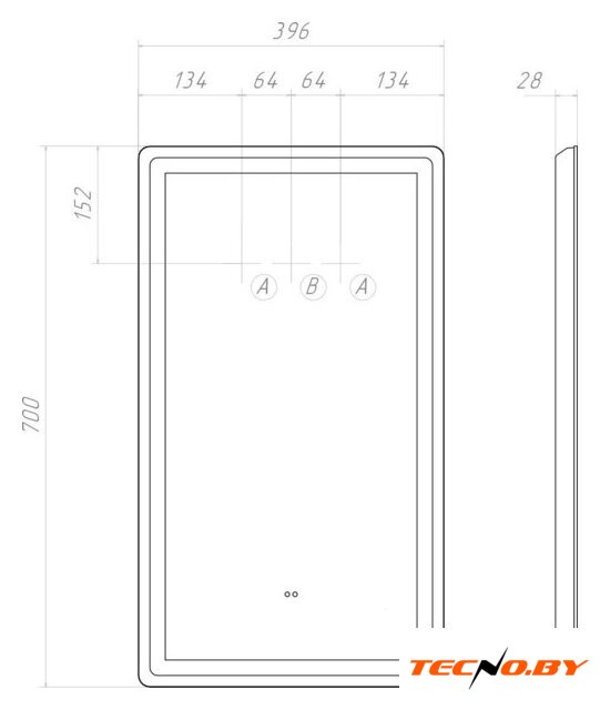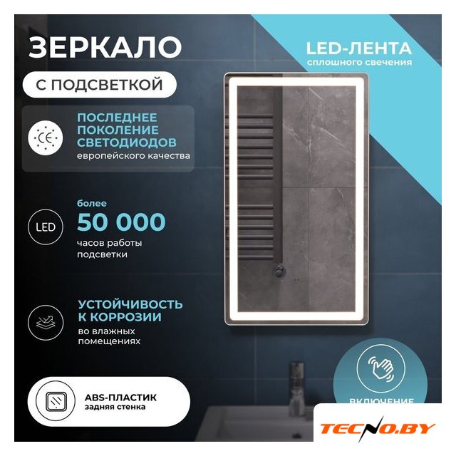 зеркало, с подсветкой, подвесная установка, ширина: 80 см