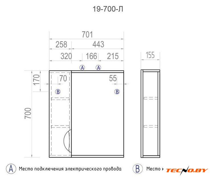 шкаф с зеркалом, подвесная установка, ширина: 60 см