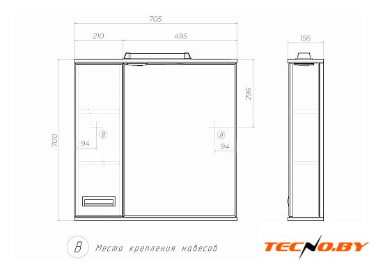 зеркало, с подсветкой, подвесная установка, ширина: 90 см