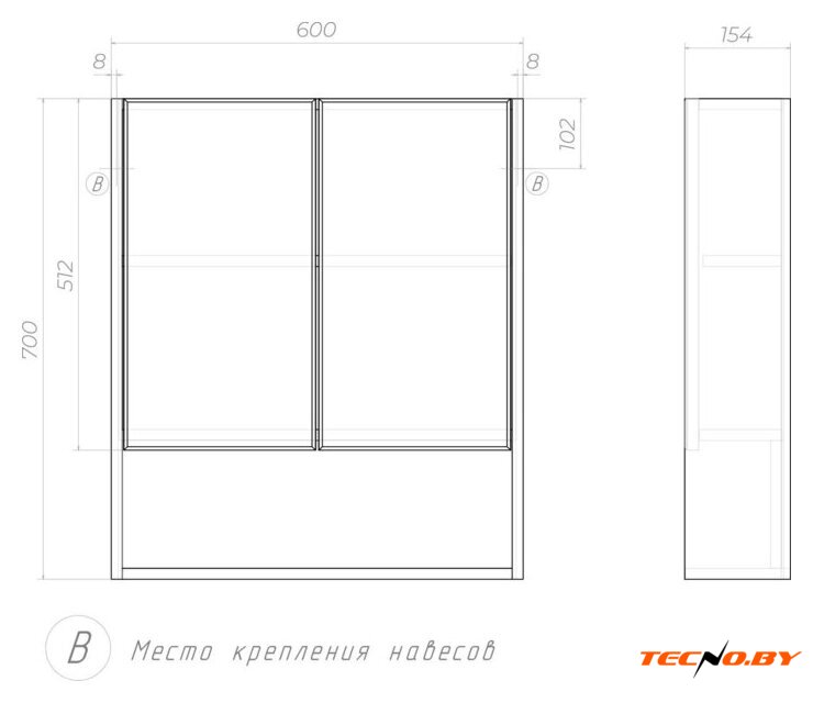 шкаф с зеркалом, подвесная установка, ширина: 56 см