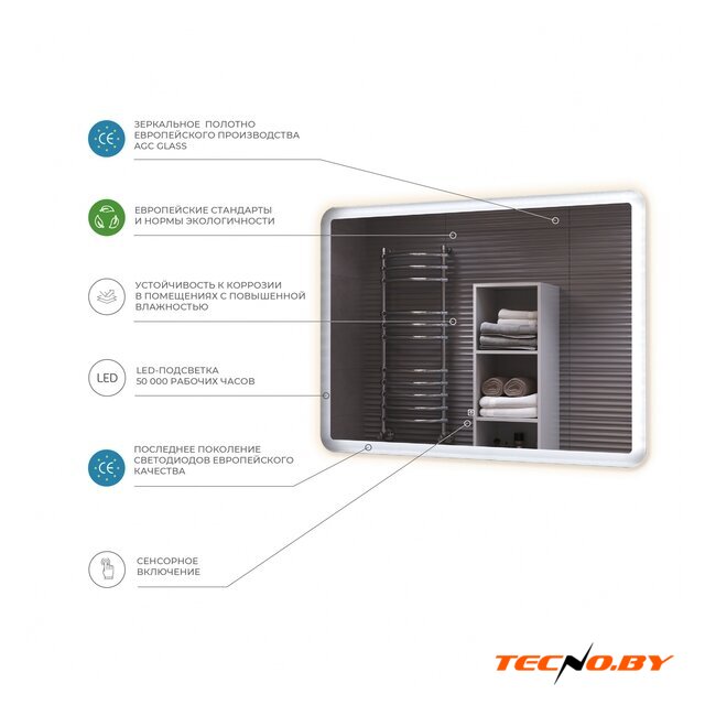 зеркало, с подсветкой, подвесная установка, ширина: 70 см