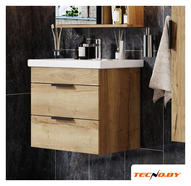 тумба под умывальник, умывальник в комплекте, подвесная установка, ширина: 88 см