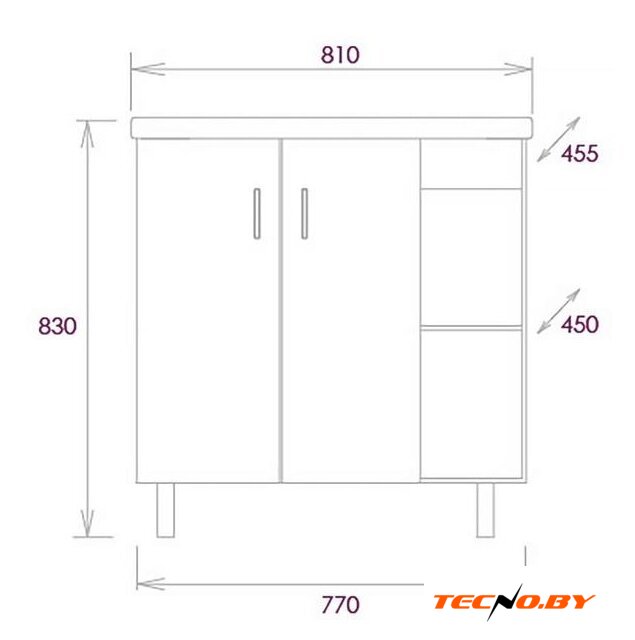 тумба под умывальник, напольная установка, ширина: 80 см