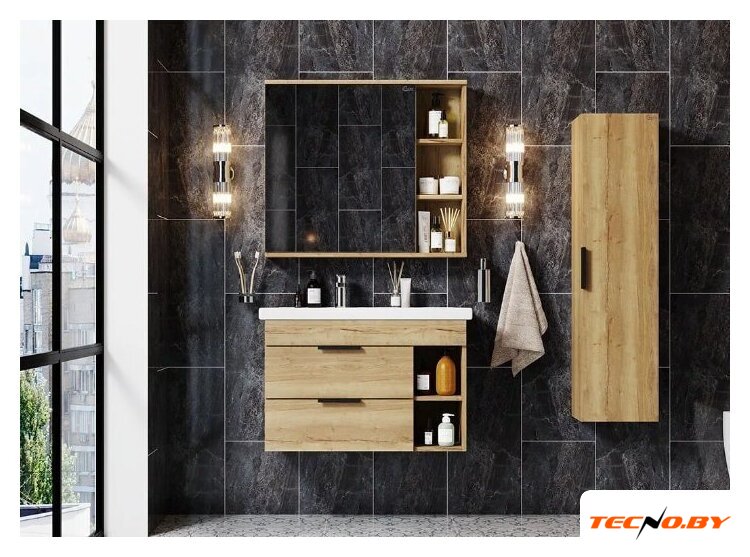 тумба под умывальник, умывальник в комплекте, подвесная установка, ширина: 79 см