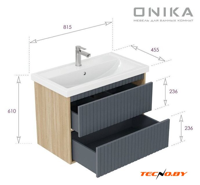 тумба под умывальник, подвесная установка, ширина: 77 см