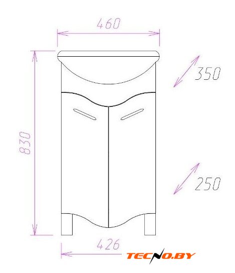 тумба под умывальник, умывальник в комплекте, напольная установка, ширина: 47 см
