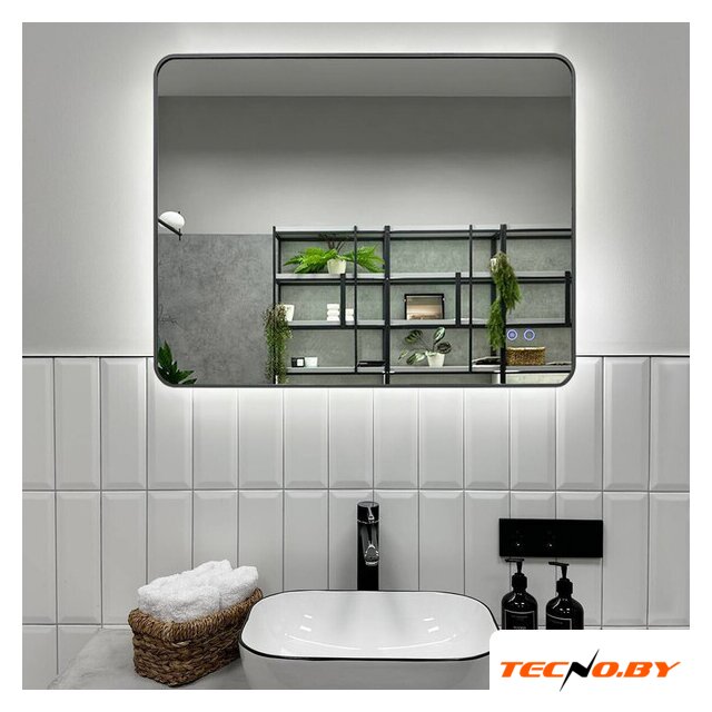 зеркало, с подсветкой, подвесная установка, ширина: 90 см