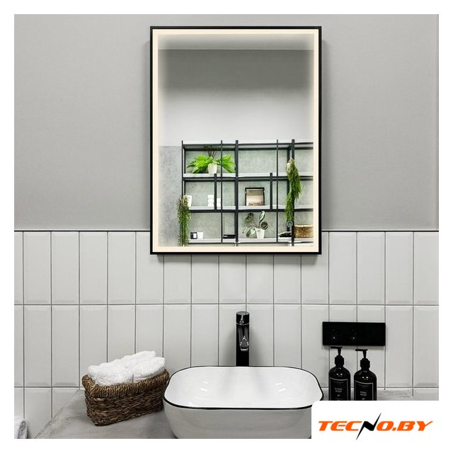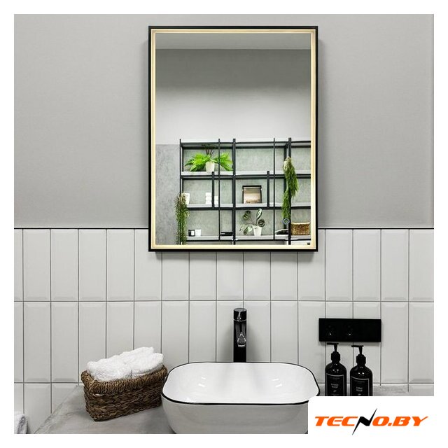 зеркало, с подсветкой, подвесная установка, ширина: 90 см