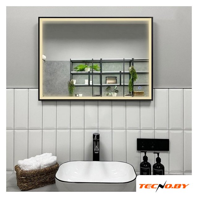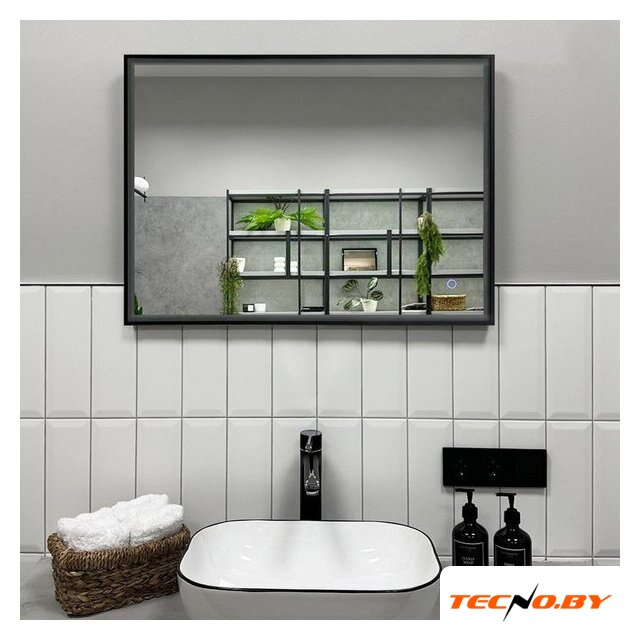 зеркало, с подсветкой, подвесная установка, ширина: 90 см