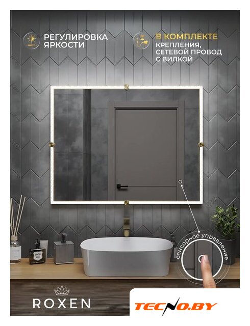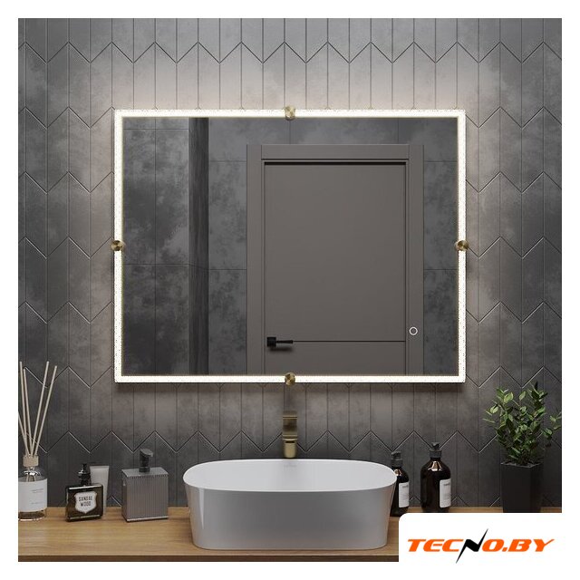 зеркало, с подсветкой, подвесная установка, ширина: 90 см