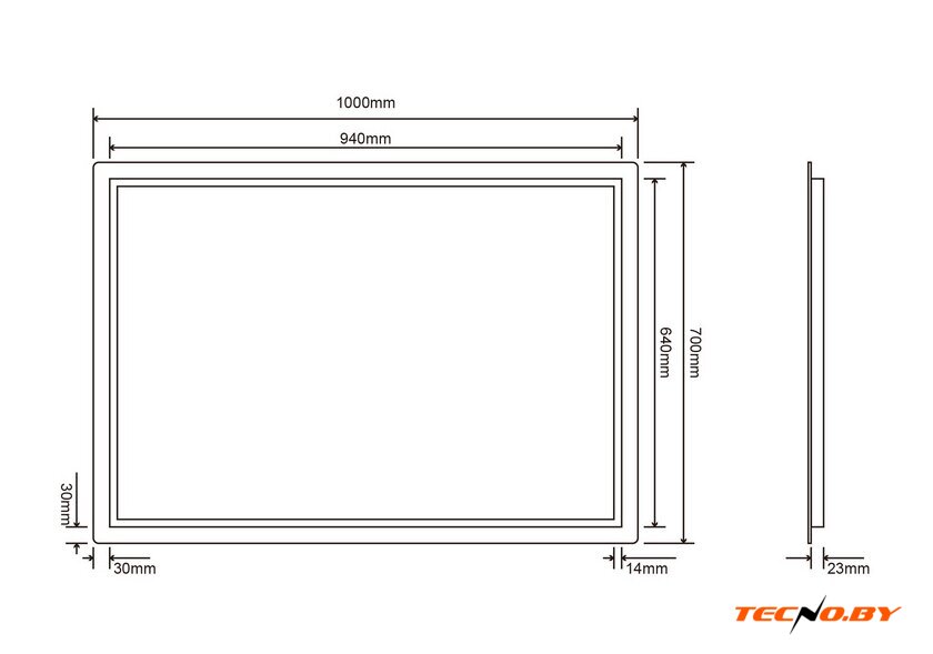 зеркало, с подсветкой, подвесная установка, ширина: 100 см