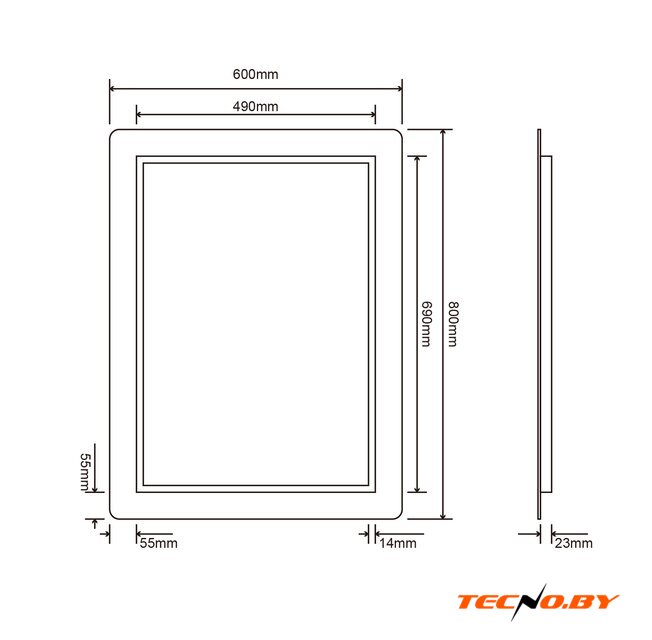 зеркало, с подсветкой, подвесная установка, ширина: 90 см