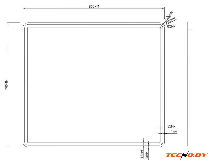 зеркало, с подсветкой, подвесная установка, ширина: 100 см