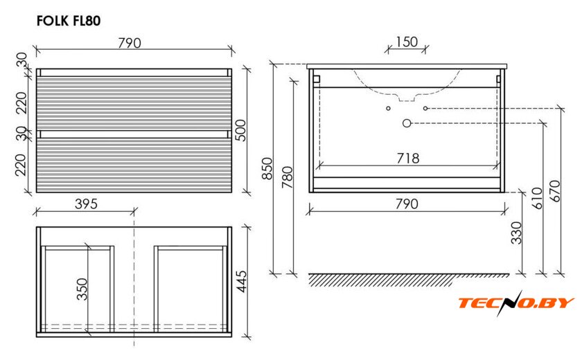 тумба под умывальник, умывальник в комплекте, подвесная установка, ширина: 80 см