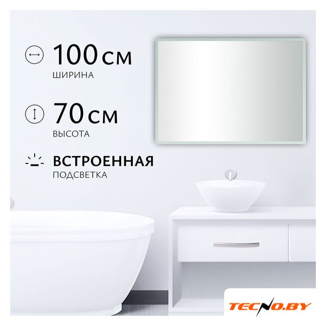 зеркало, с подсветкой, подвесная установка, ширина: 100 см