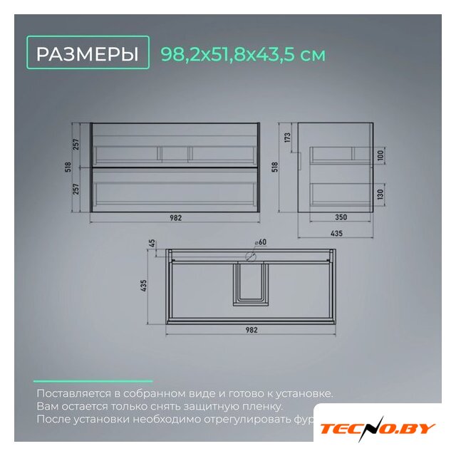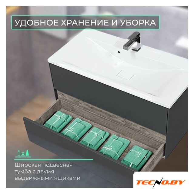 тумба под умывальник, умывальник в комплекте, подвесная установка, ширина: 39 см
