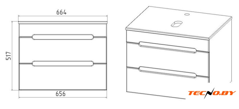тумба под умывальник, подвесная установка, ширина: 66 см