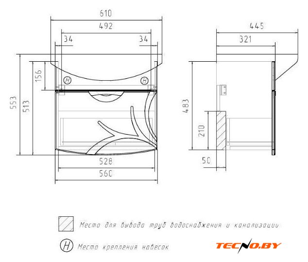 тумба под умывальник, подвесная установка, ширина: 55 см