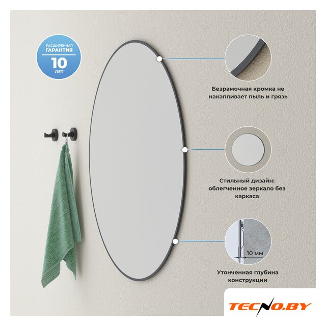 зеркало, с подсветкой, подвесная установка, ширина: 52 см